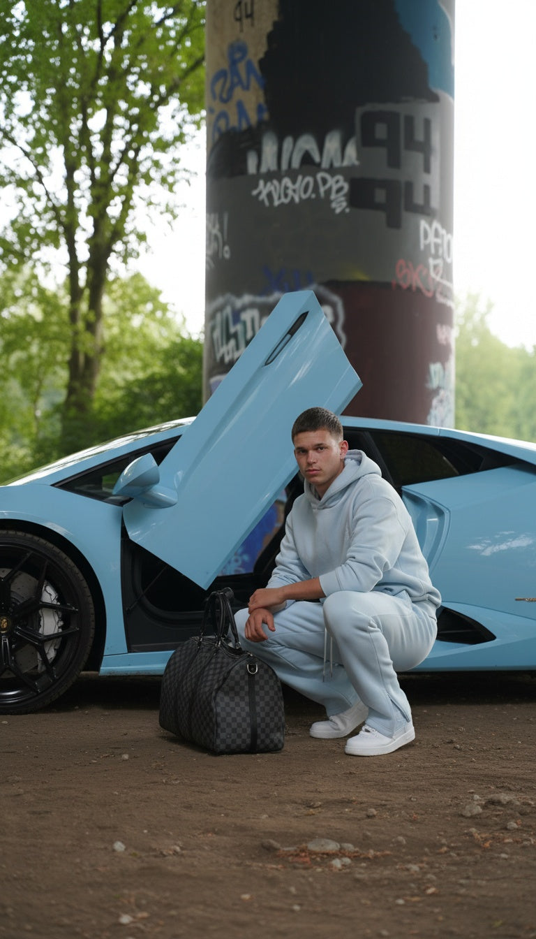 HOODIE & WIDE-LEG PANTS SET BABY BLUE