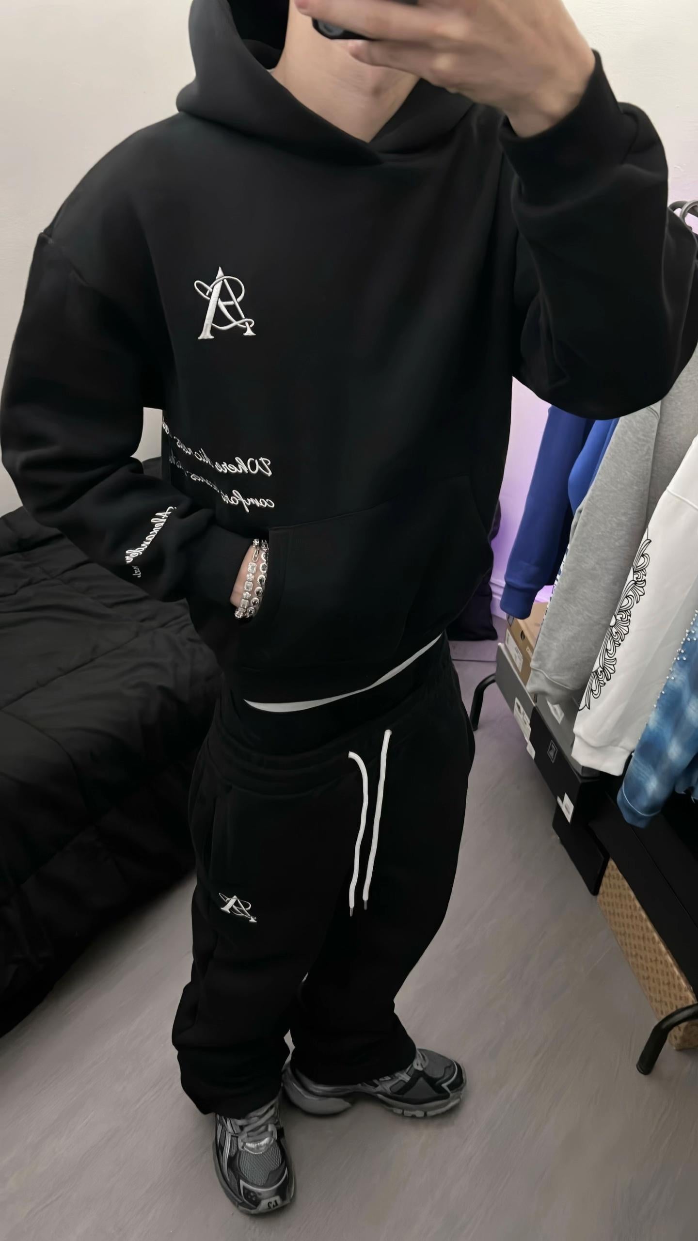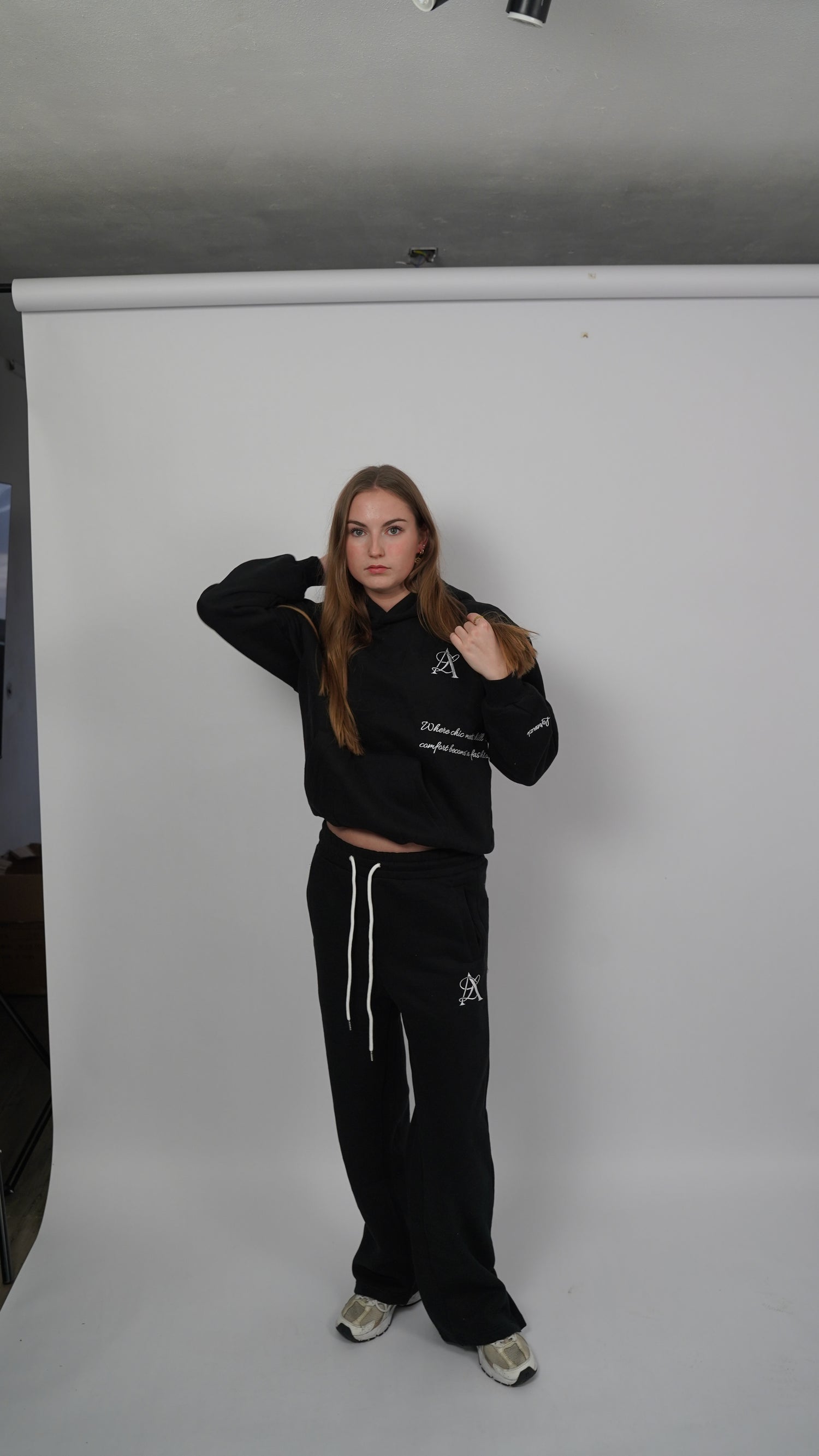 HOODIE & WIDE-LEG PANTS SET BLACK ROSA - LIMITED EDITION