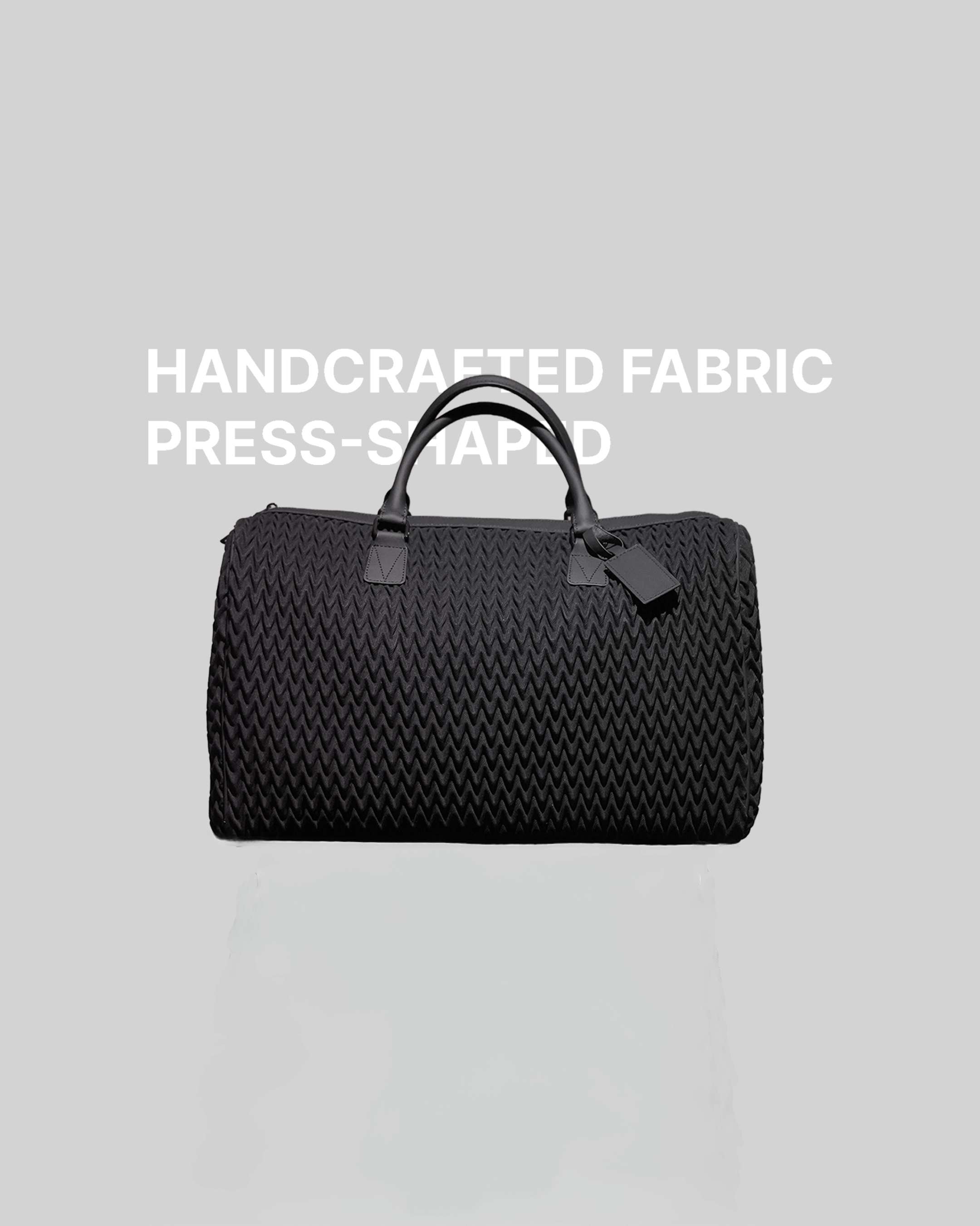 This bag is crafted from recycled fabric and carefully shaped by hand. each piece embodies sustainability, craftsmanship, and timeless character.
