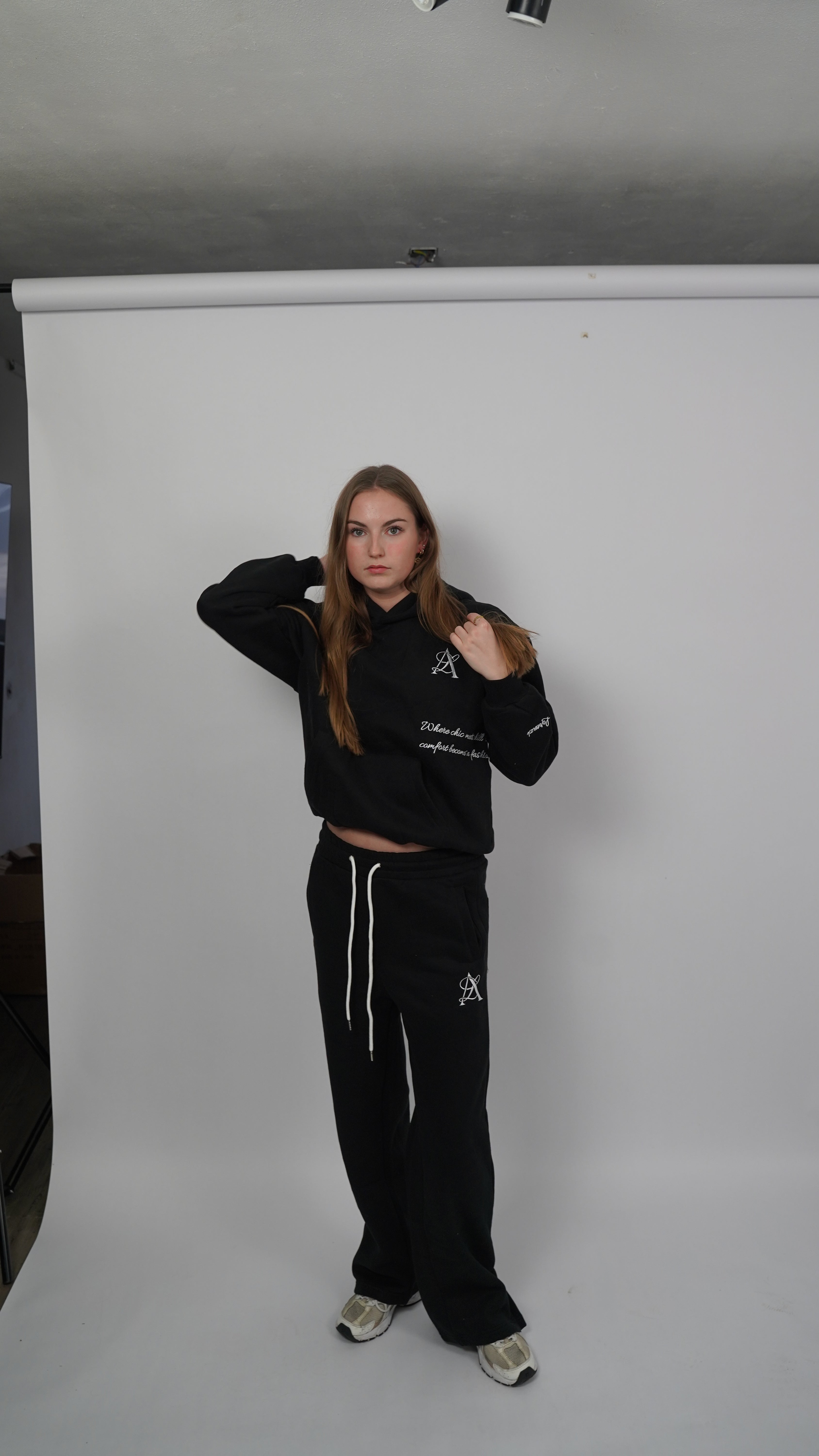 HOODIE & WIDE-LEG PANTS SET BLACK